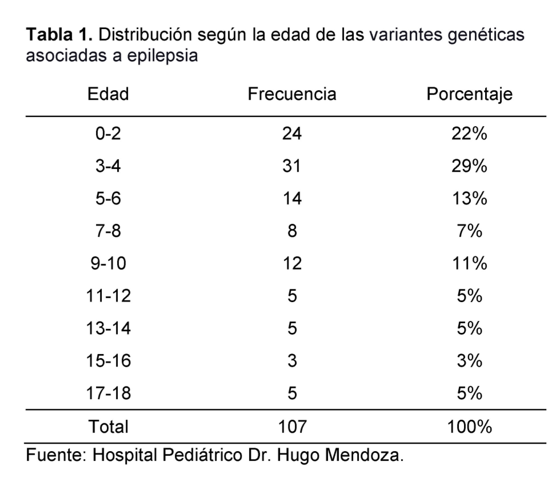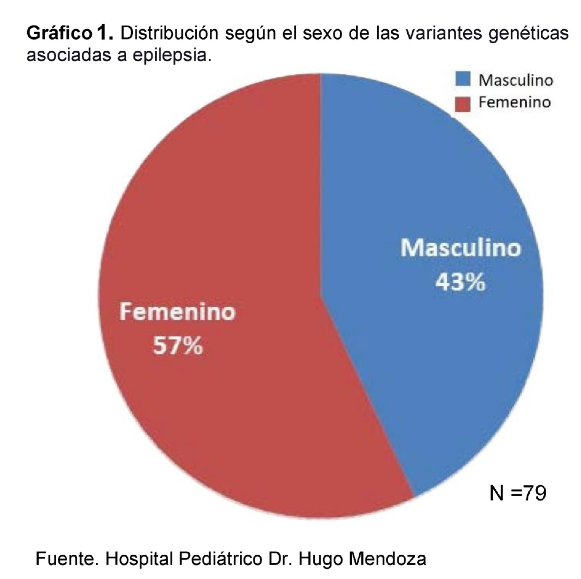 During the period from August 2018 - August 2021, in the medical genetics service of the Dr. Hugo Mendoza Pediatric Hospital, a total of 2,016 patients were attended, this being our universe, of which 154 patients were attended for presenting epilepsy, selecting them as our population, from the latter a sample of 107 patients was taken, which molecular genetic studies were performed, and only 79 patients turned out to have one or more genetic variants associated with epilepsy, and 28 of them, did not present any variant.