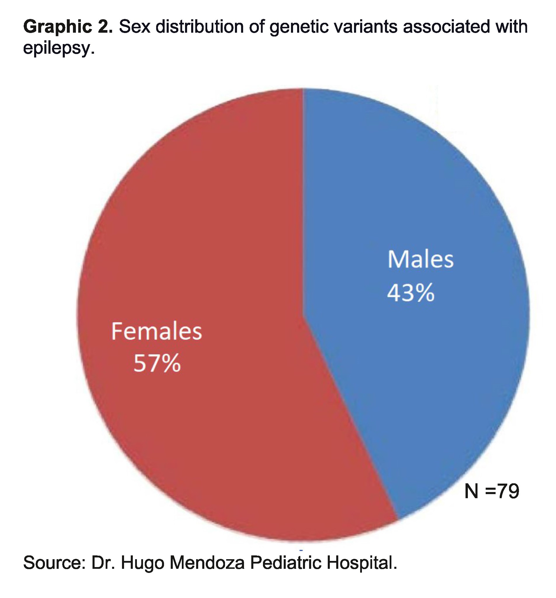Of the total number of cases of genetic variants associated with epilepsy, our results showed that the female sex, with a total of 45 patients, was the most frequent, compared to the male sex, which only presented 34 patients.