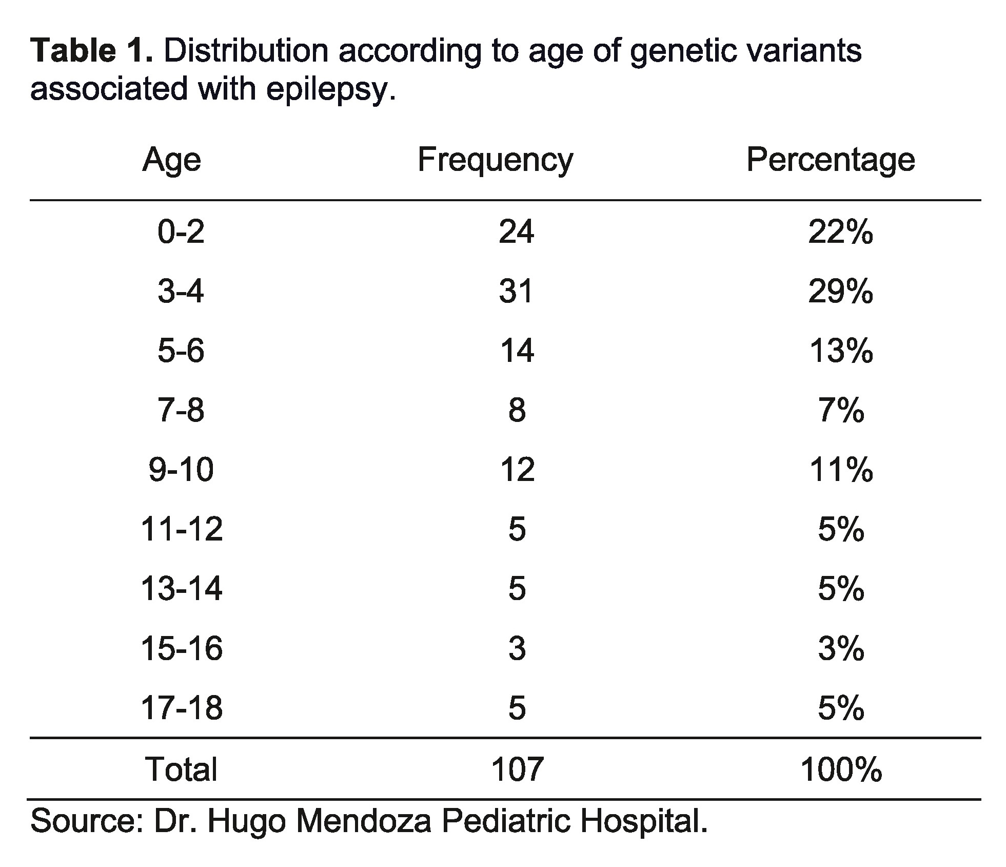 A descriptive, cross-sectional study was conducted with retrospective collection of information to determine the frequency of genetic variants associated with epilepsy in patients at the Dr. Hugo Mendoza Pediatric Hospital in the Villa Mella sector, Santo Domingo City, Dominican Republic. The study period covered from August 2018 to August 2021.