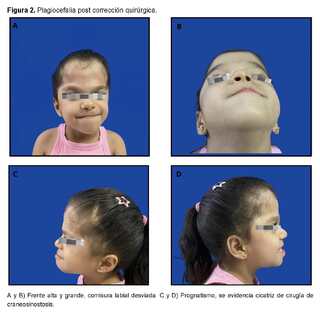 La intervención quirúrgica se realiza a los 5 meses de edad de la paciente, en la cual se encuentran hallazgos de deformidad craneofacial que compromete la órbita derecha por disminución del diámetro horizontal, depresión frontal derecha compensada por abombamiento izquierdo e hiperostosis de la sutura coronal derecha con fusión patológica concordante con craneosinostosis tipo plagiocefalia anterior. Se realiza la corrección y remodelación de la órbita sin complicaciones con manejo posterior en la Unidad de Cuidado Intensivo Pediátrica hasta ser dada de alta por presentar una adecuada evolución clínica.